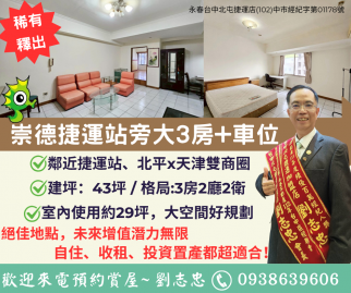 台中買屋賣房北屯崇德捷運站旁|北平天津雙商圈|大3房+車位