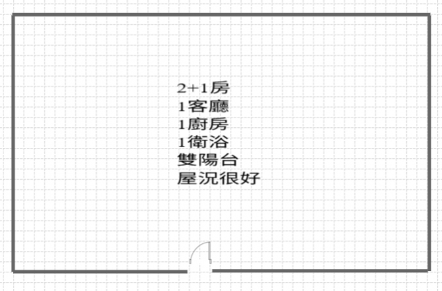 - 格局: 2+1房(室) 1廳 1衛 2陽台 1廚房