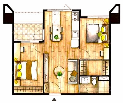 - 格局: 2房(室) 2廳 1衛 1陽台 1廚房