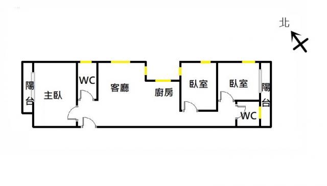 - 格局: 3房(室) 2廳 2衛 2陽台 1廚房