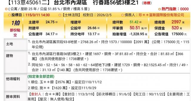 台北法拍專家 台北市內湖區行善路56號3樓之2