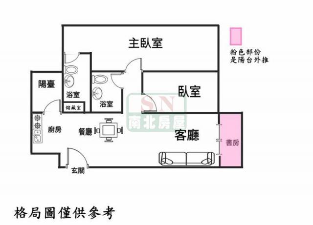 - 格局: 2房(室) 2廳 2衛 1陽台