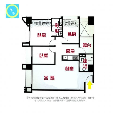 - 格局: 3房(室) 2廳 2衛 1陽台 1廚房