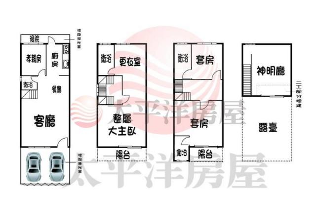 - 格局: 4房(室) 3廳 3衛 2陽台 1廚房