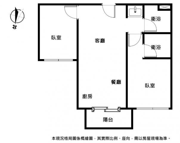 - 格局: 2房(室) 2衛 1陽台
