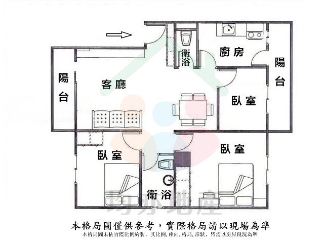 - 格局: 3房(室) 2廳 2衛 2陽台