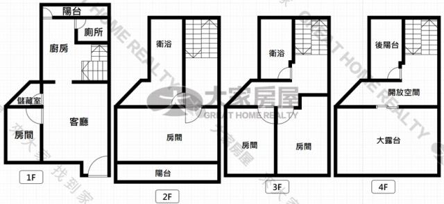 - 格局: 4房(室) 3廳 3衛 2陽台 1廚房