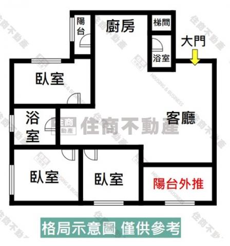 - 格局: 3房(室) 2廳 2衛 1陽台 1廚房
